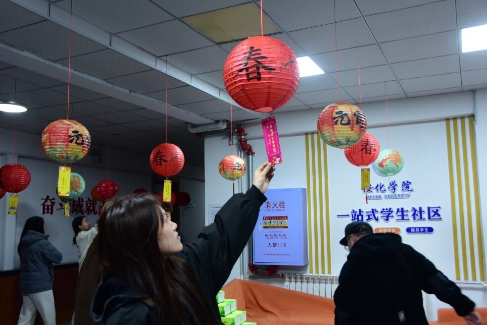 3月3日,正月十五元宵佳节,绥化学院大学生一站式学生社区内张灯结彩,一场别开生面的猜灯谜活动正在火热进行。恰逢新学期开学季,团圆暖意与青春朝气在这里撞个满怀,让返校学子们刚踏入校园就感受到了浓浓的节日氛围。